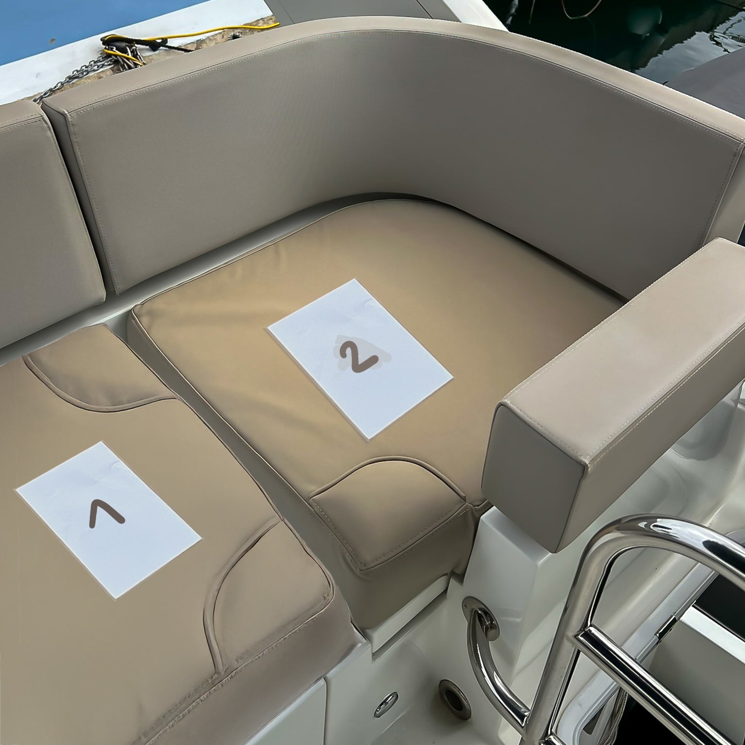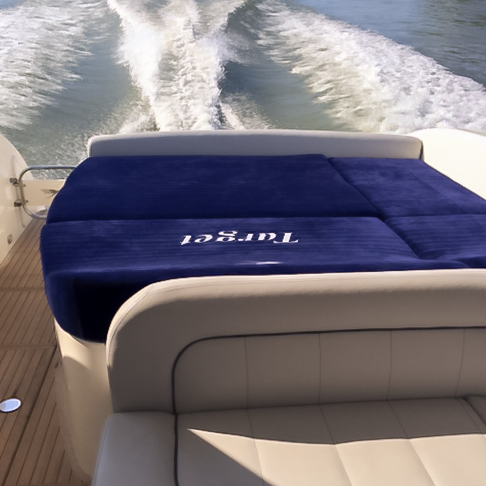 Our protective covers deliver unmatched seating and lying comfort on your yacht. Constructed from skin-friendly velour, they do not adhere to the skin and effectively shield your sensitive deck cushions.