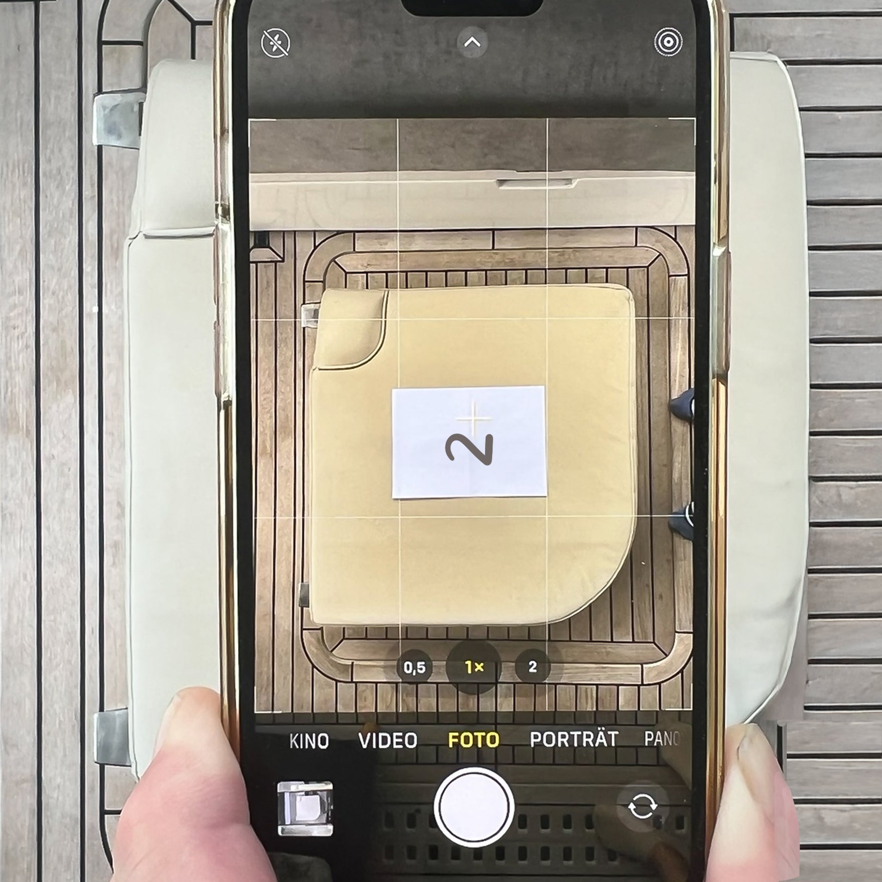 Place reference unit: Lay a meter stick or a DIN A4 sheet on the cushion. This aids in accurately calculating the cushion dimensions.